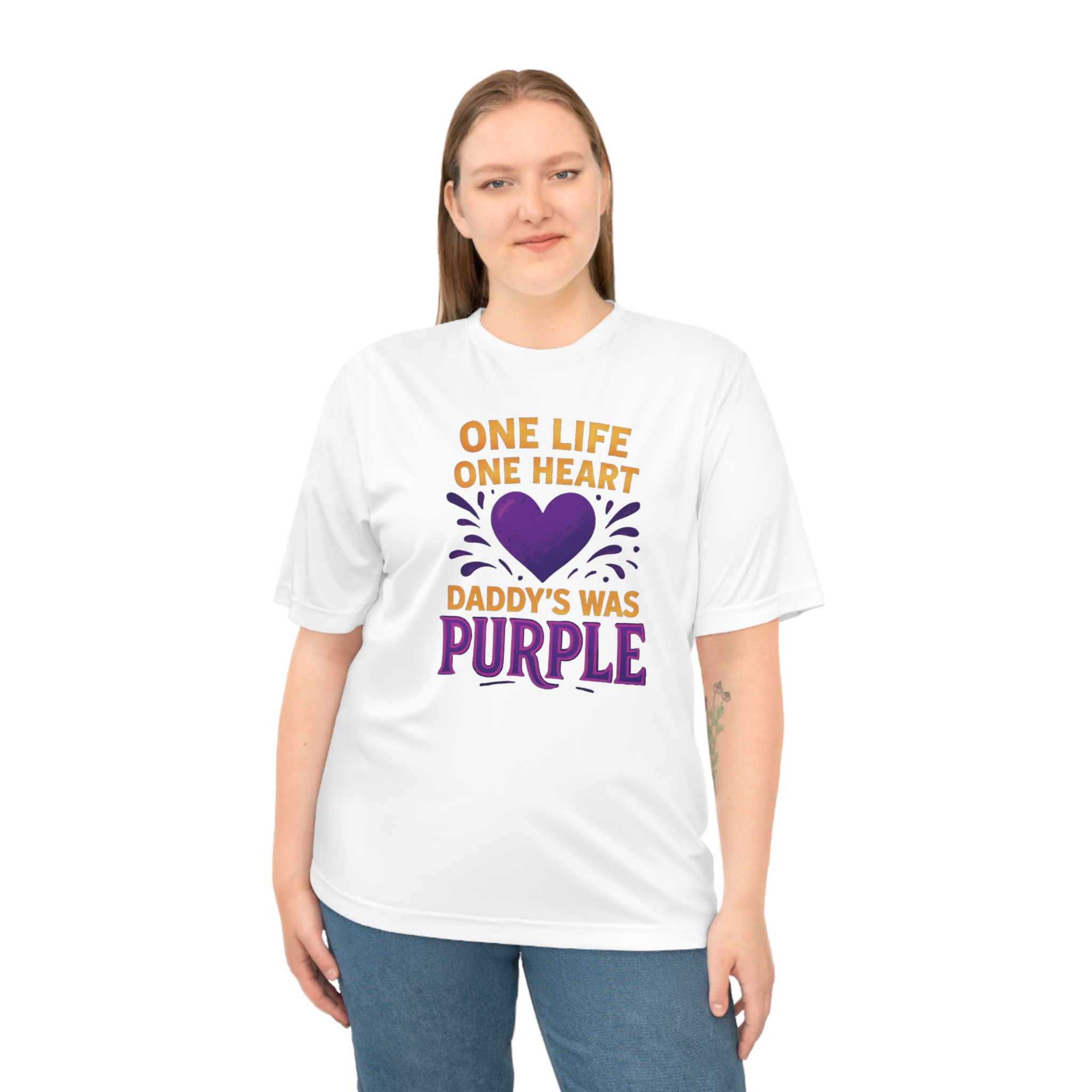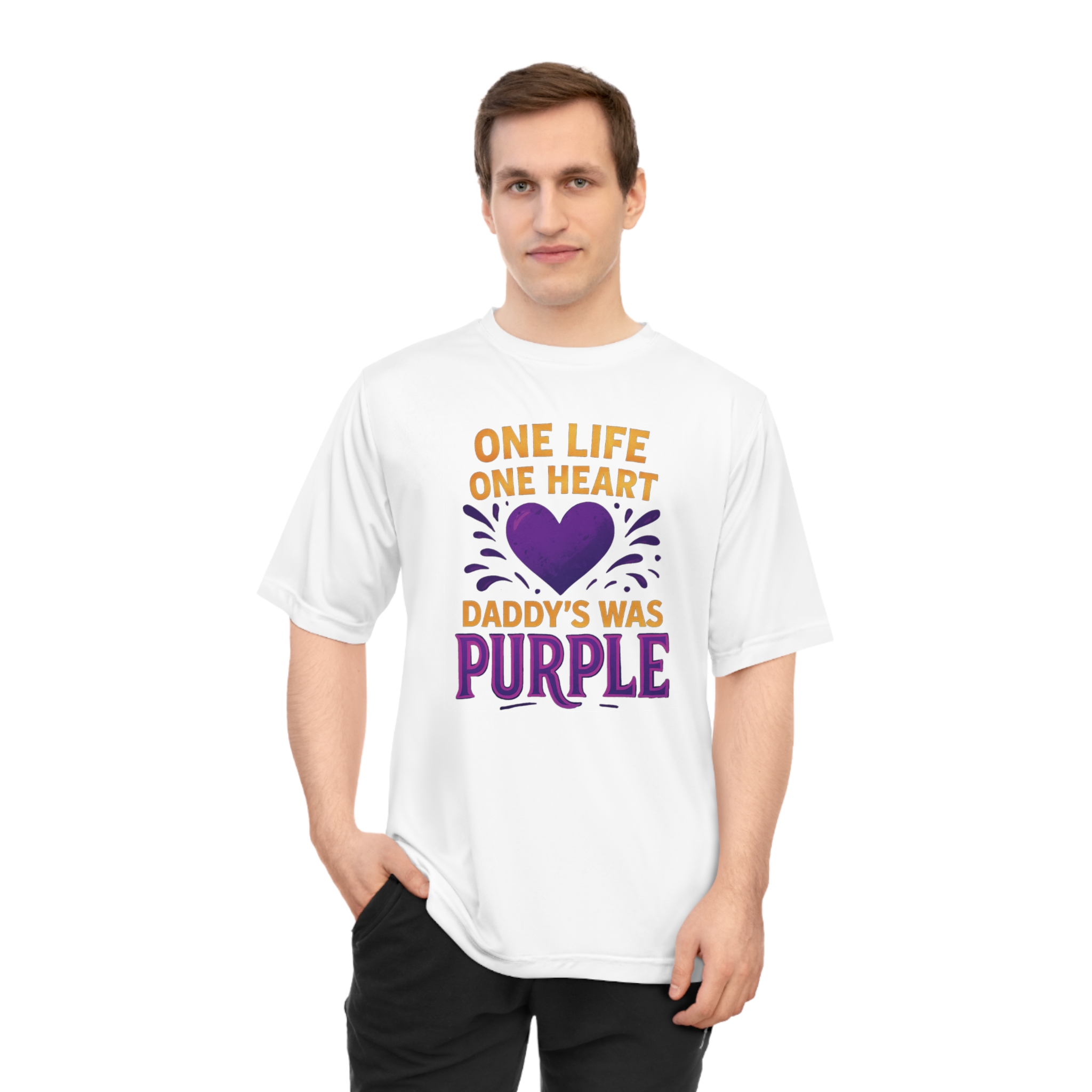 Introducing the ultimate performance t-shirt, designed for those who live life to the fullest. Crafted from 100% polyester, this shirt isn't just about style; it's built to last and dry quickly, making it perfect for any active lifestyle. With a vibrant design that celebrates love and remembrance, this athletic fit t-shirt will not only keep you looking great, but feeling great too. Picture yourself wearing this during outdoor activities, festivals, or beach outings, radiating positivity and vibrance. Suitable for anyone who values performance and purpose, this t-shirt makes an ideal gift for Father's Day, memorial events, or just to remind someone special of their loved ones. Embrace comfort, style, and sentiment with every wear!