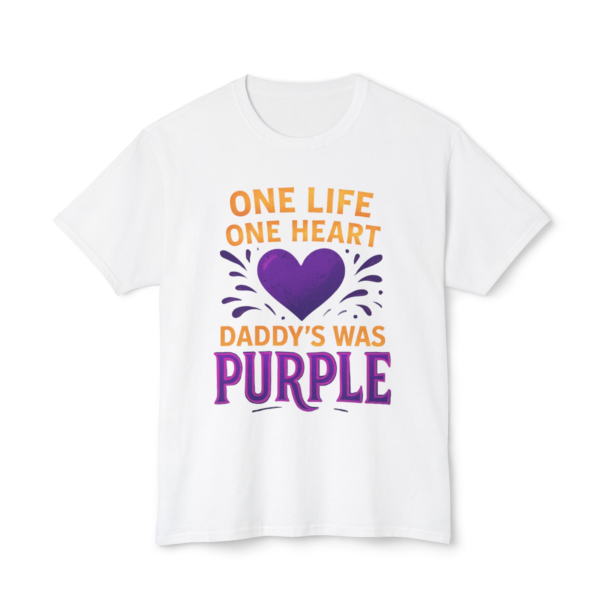 Purple Heart Memory T-Shirt, Grief Support Tee, Dad Tribute Shirt, Inspirational Cotton Top, Memorial Day Gift